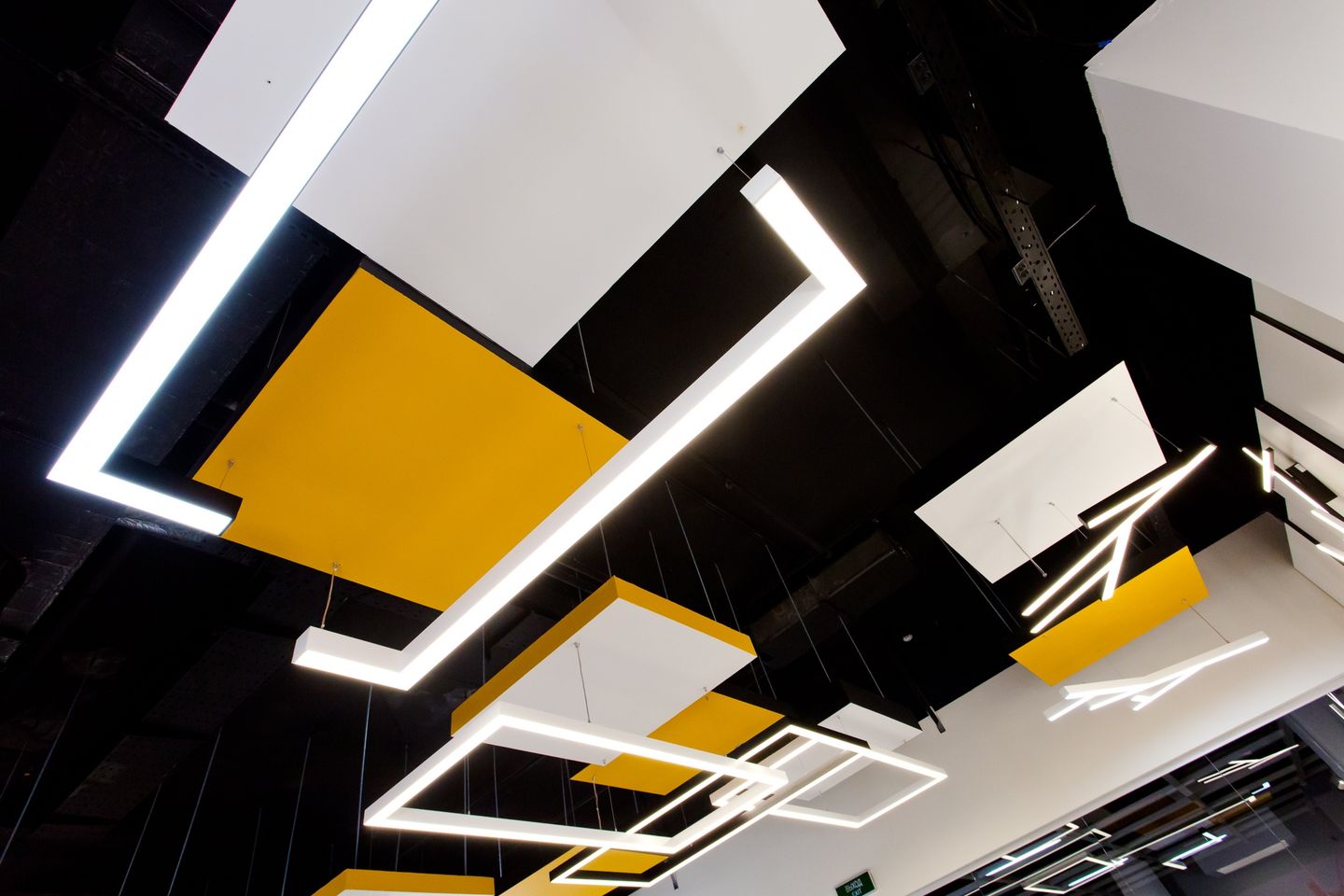 Салон — демонстрационный: на потолке собраны примеры линейных и рамочных светильников, а в зале — рабочие зоны со стендами и образцами. Это помогает быстро понять, какой «рисунок» даст свет, как выглядит засветка и что лучше под вашу задачу (подсветка мебели/ниш, общий свет, акценты).