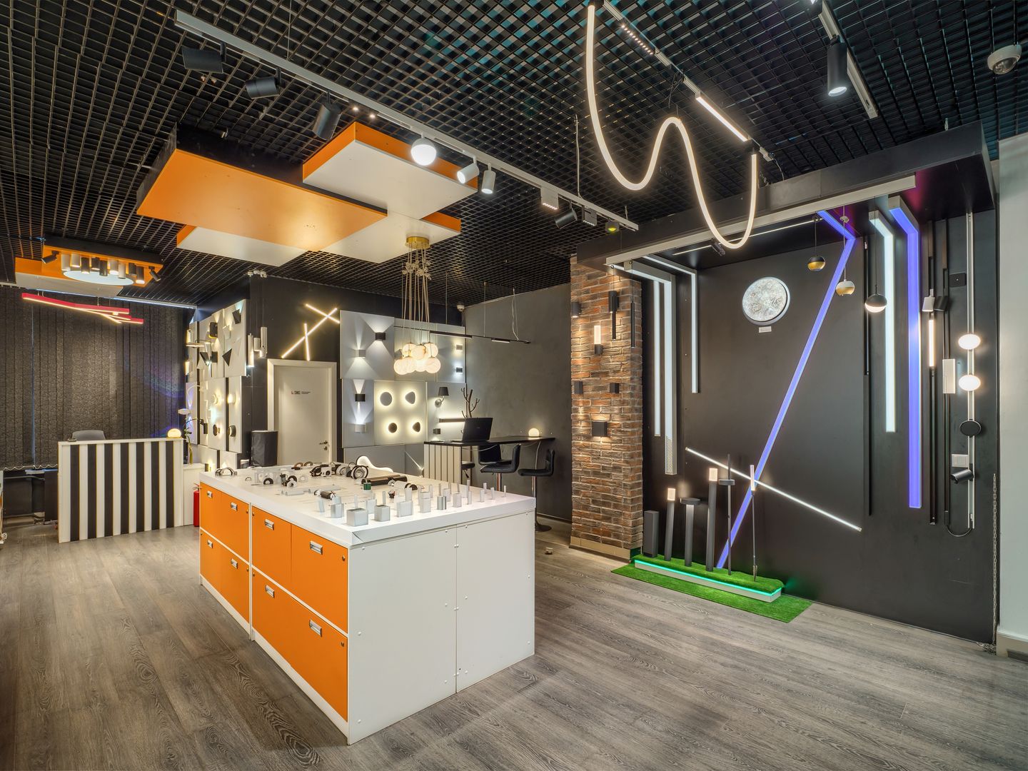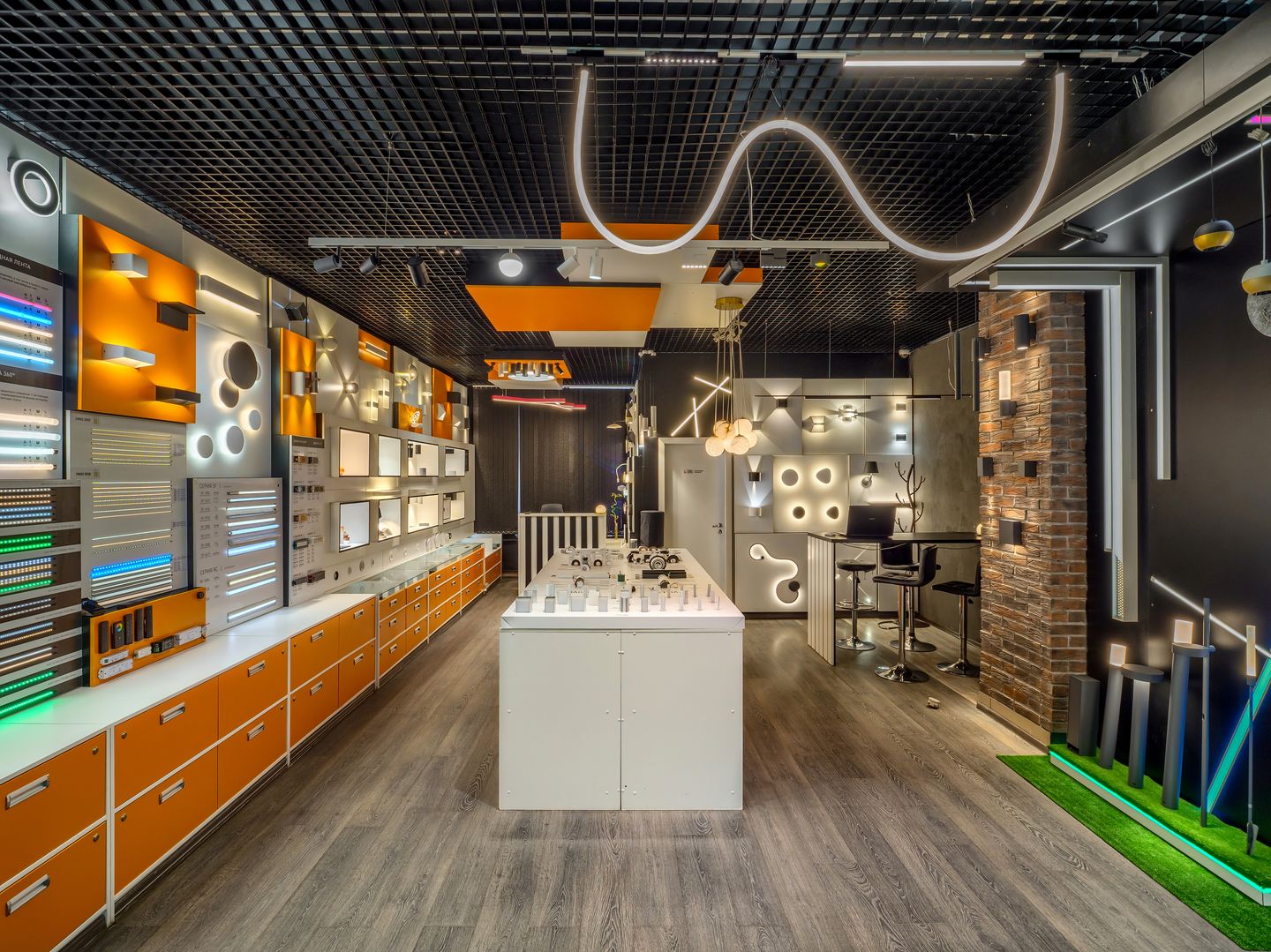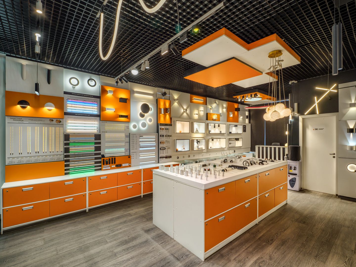 SWG в СЦ «Бекетов» — магазин светодиодного освещения в Нижнем Новгороде, где акцент сделан на демонстрацию световых линий, профилей и светильников. Пространство помогает сразу представить, как будут выглядеть линейный свет, основное освещение и декоративная подсветка в готовом интерьере.