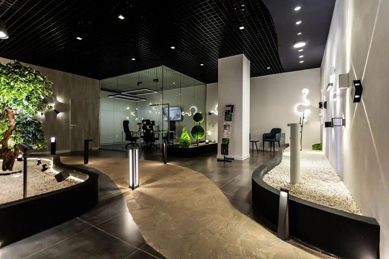 Большой шоурум с островными экспозициями и стендами: удобно выбирать решения для интерьеров и коммерческих объектов, сравнивая световые сценарии “на месте”.