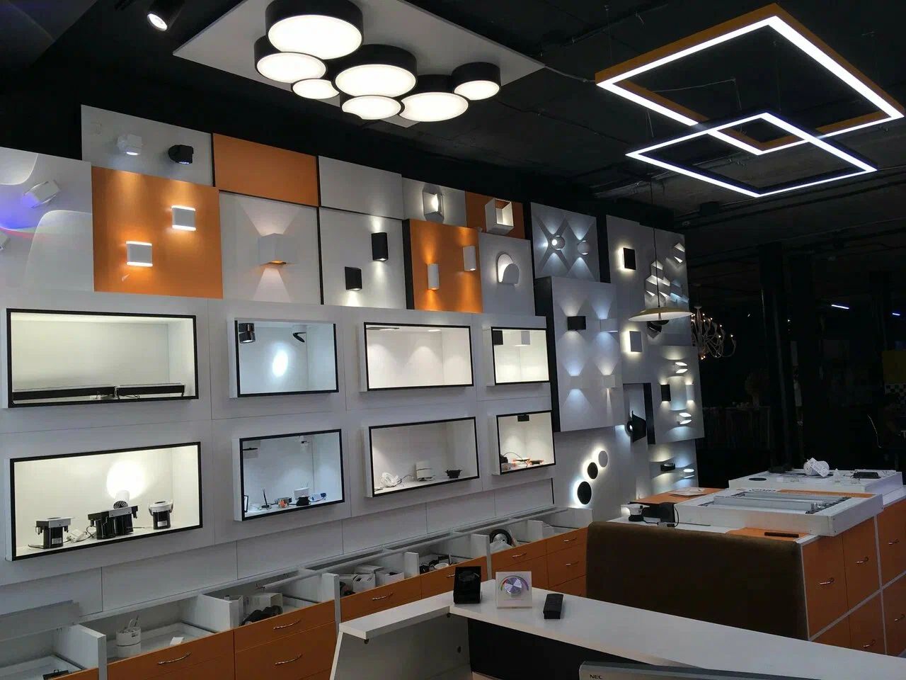 В шоуруме — большая демонстрационная зона со световыми сценариями и образцами: линейный свет, трековые решения, декоративные и настенные светильники. Так проще сравнить оттенок, яркость, оптику и понять, как свет будет выглядеть в интерьере.