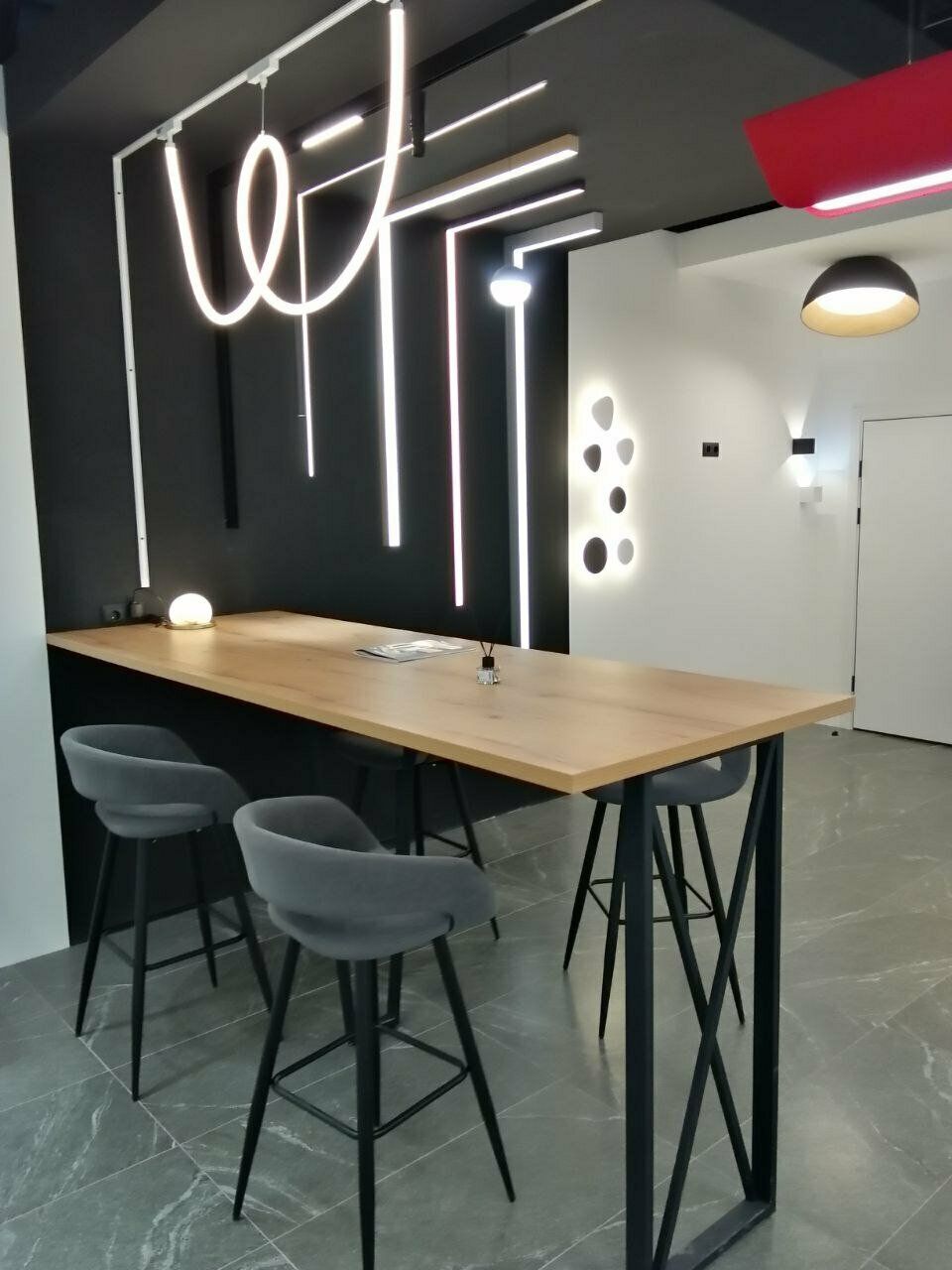 Шоурум с заметной вывеской и демонстрационными зонами: удобно сравнить световые решения и собрать комплект под монтаж.